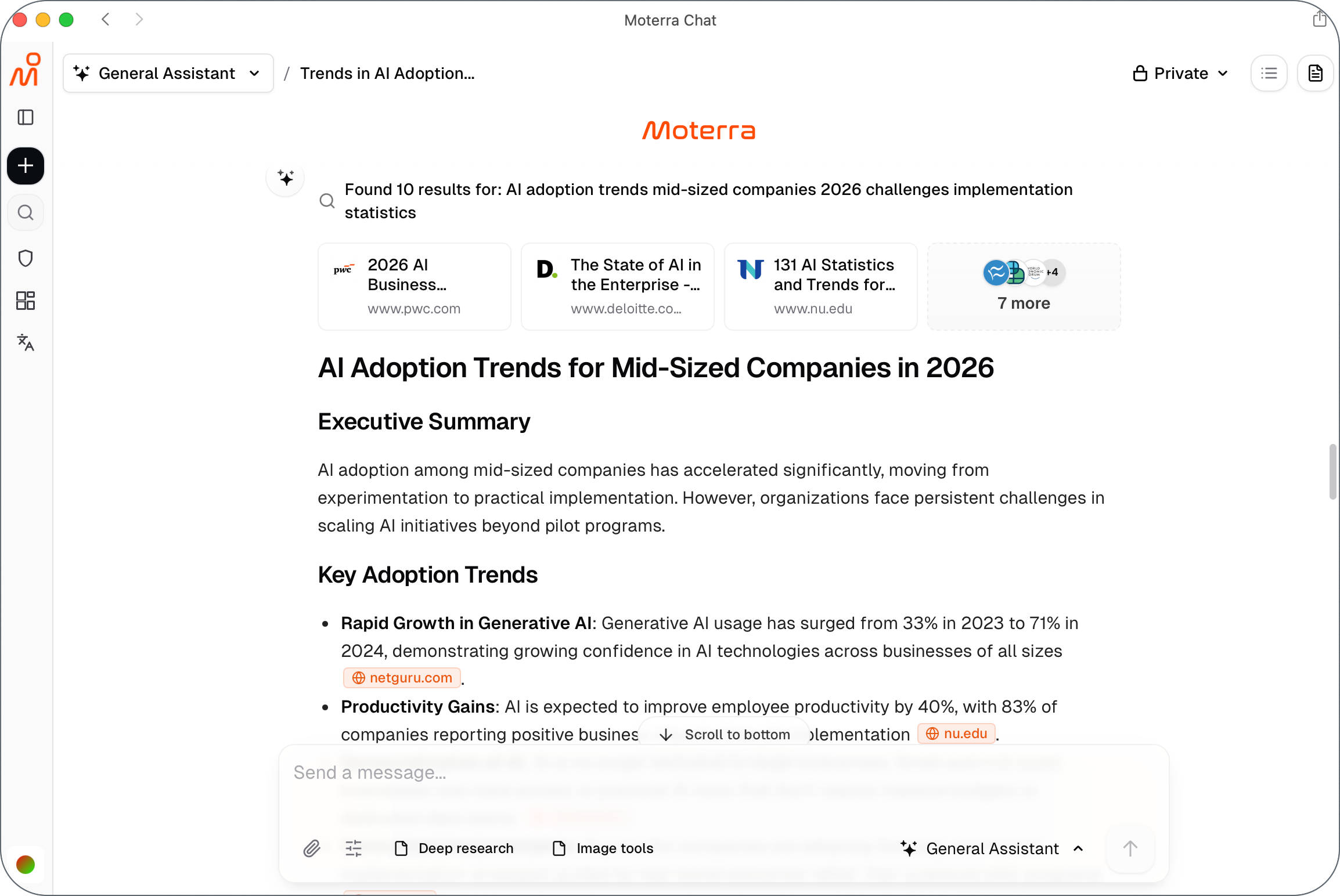 For more complex or in-depth research tasks, you can use Deep Research mode in the General Assistant.